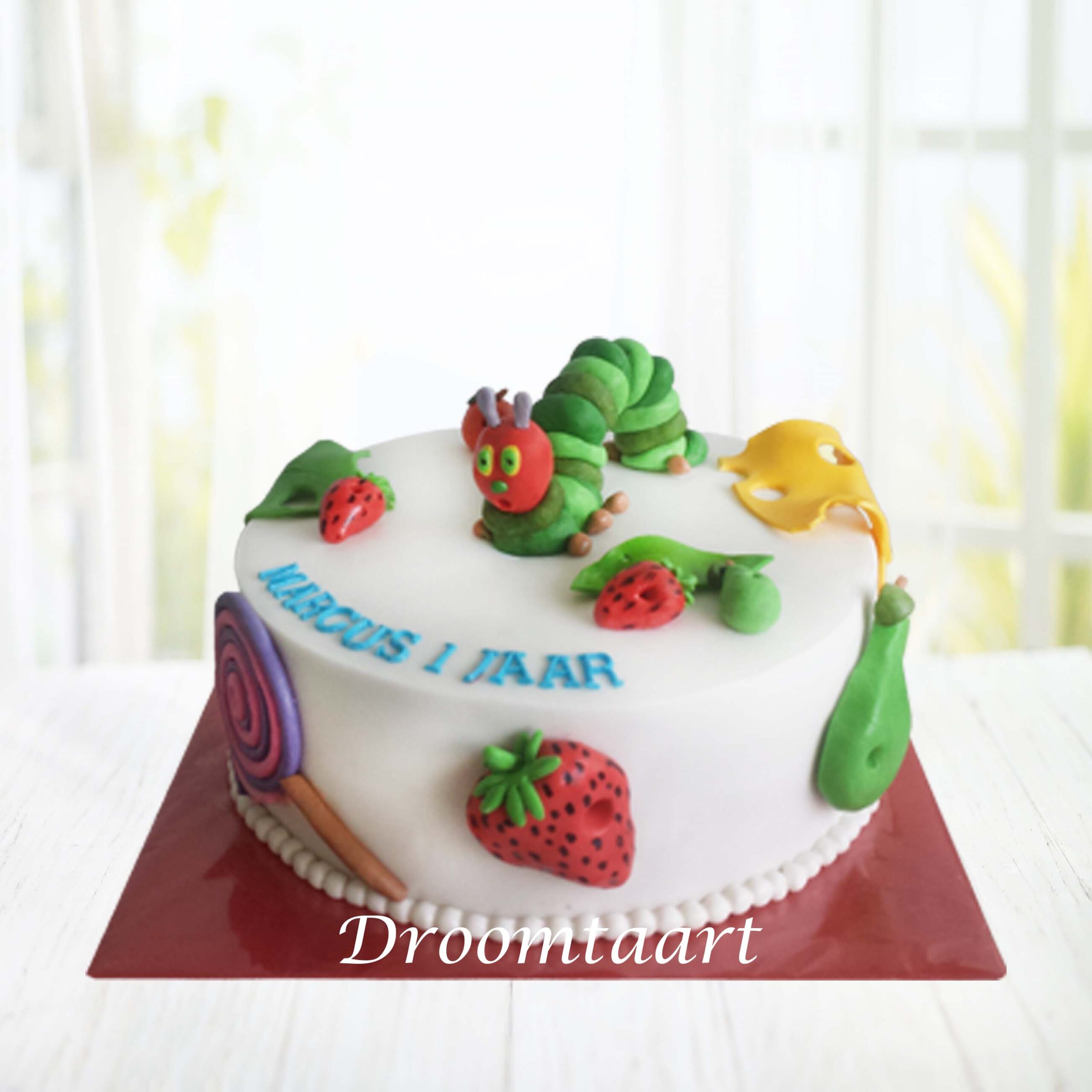Je Rupsje Nooitgenoeg taart bestel je natuurlijk bij Droomtaart. Voor elke type (verjaardags)feestje en voor elk type themafeest hebben wij een bijpassende taart. Onze taarten zijn helemaal zelf samen te stellen qua cake smaak en vulling.